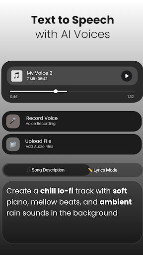 Instant Sharing & Export: Download MP3/WAV or share directly to social media, messaging apps, or projects.